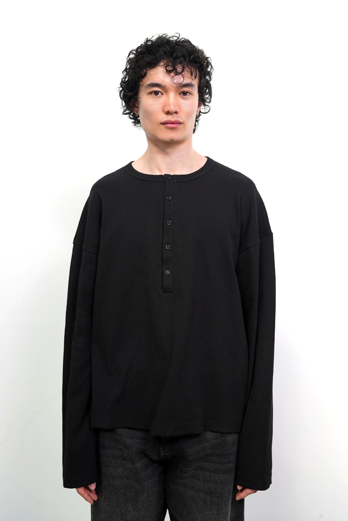Black Extended Placket Henley